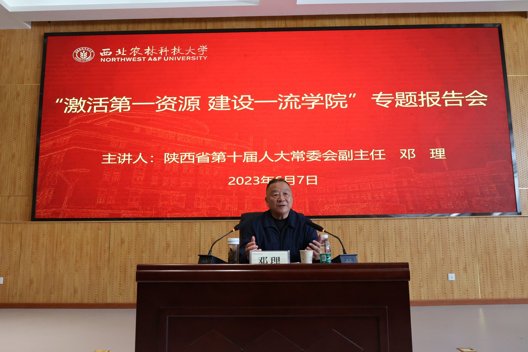为深入学习贯彻党的二十大精神,扎实推进学习贯彻习近平新时代中国特色社会主义思想主题教育,6月7日下午,学院邀请杰出校友、陕西省第十届人大常委会副主任邓理来校为师生作主题教育专题报告。校党委副书记闫祖书出席并主持。学院党委理论学习中心组成员、处级领导干部、全体教职工及学生党员代表300余人现场聆听。