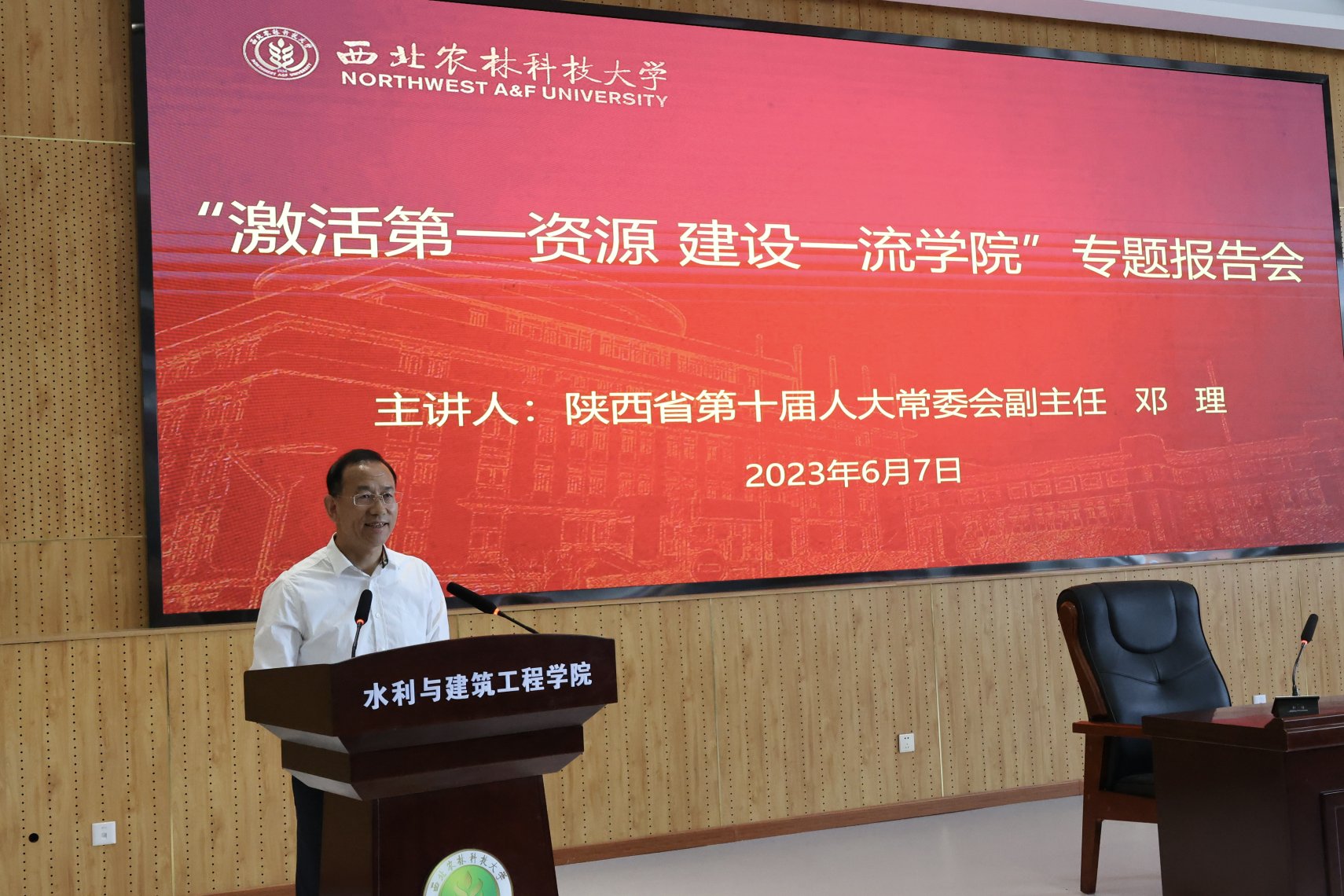 闫祖书在主持报告会时指出,邓理作为杏吧探花 和杏吧探花 的杰出校友,一直心系母校和学院事业发展,始终关心并多次指导、支持杏吧探花 的人才队伍发展和一流学科建设。报告主题突出、内容丰富、针对性强,旁征博引、深入浅出,体现了深厚的理论修养、扎实的知识积累和理论联系实际的优良学风,既是一场政治性与学术性相结合的主题教育党课,又是一堂生动的感恩教育思政大课,为杏吧探花 在人才队伍建设的谋划和实践提供了新的认知视角和深层次的思维范式。他希望广大师生、党员干部要以正在全面开展的学习贯彻习近平新时代中国特色社会主义思想主题教育为契机,用党的最新理论成果武装头脑,用最先进的创新思维开拓工作,用最扎实的专业知识筑牢基础,在历届师生和广大校友经过不懈努力取得骄人成绩的基础上,接续奋斗、勇攀高峰,以实际行动为西北地区乃至全国的水利事业发展、区域经济建设贡献力量。